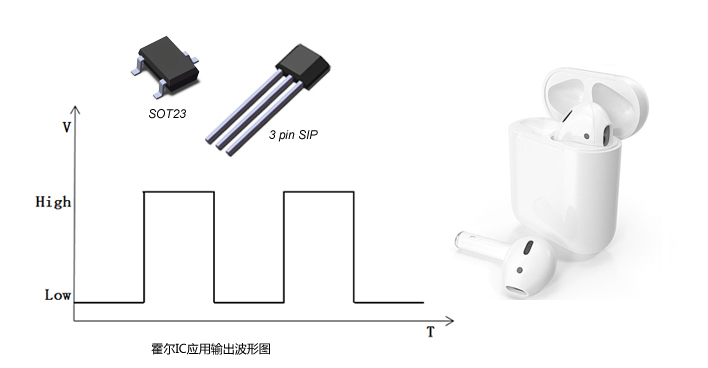 應用案例:霍爾開關在TWS藍牙耳機中起開關作用,檢測盒蓋是否閉合,來判斷是否充電。推挽輸出,無需另加上拉電阻。